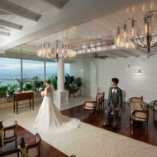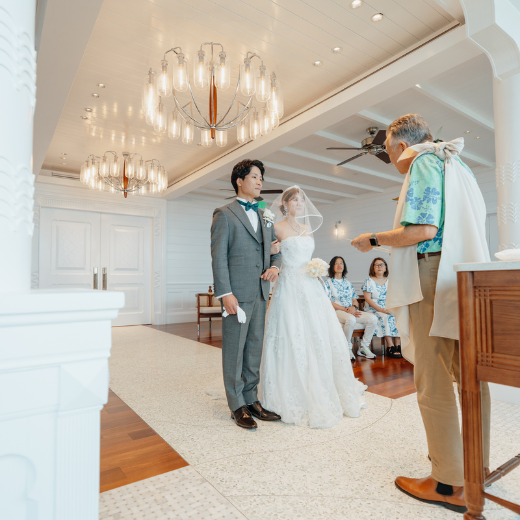 簡単な英語で話す部分があり、何度か練習しましたが緊張すると自分が何を話しているか分からなくなってしまうことはありました。 ですが、音楽も素晴らしく牧師さんも明るく盛り上げてくださる方で皆さんに見守られながら、ゆっくりとした幸せな時間を体験することができました。 現地の日本のスタッフさんもとても優しく明るい方で最高です。